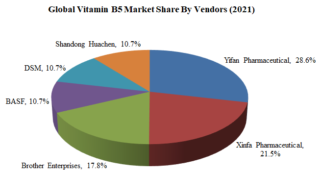 Global manufacturers of vitamin B5 include Yifan Pharmaceutical, Xinfa Pharmaceutical, Brother Enterprises, BASF, DSM, Shandong Huachen.