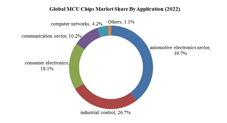 Analyzing the downstream applications of MCU chips in 2022, the automotive electronics sector accounted for the largest market share at 39.7%. This highlights the critical role of MCU chips in modern automotive systems, including advanced driver-assistance systems (ADAS), infotainment systems, and engine control units (ECUs). The industrial control segment held a substantial share of 26.7%, underscoring the importance of MCU chips in ensuring efficient automation and control processes across various industries. Consumer electronics, including smartphones, tablets, and wearable devices, represented 18.1% of the market, emphasizing the pervasive integration of MCU chips in everyday consumer technology. The communication sector accounted for 10.2%, encompassing applications in wireless communication systems, IoT devices, and networking equipment. Lastly, computer networks accounted for 4.2%, reflecting the utilization of MCU chips in network infrastructure and server systems.