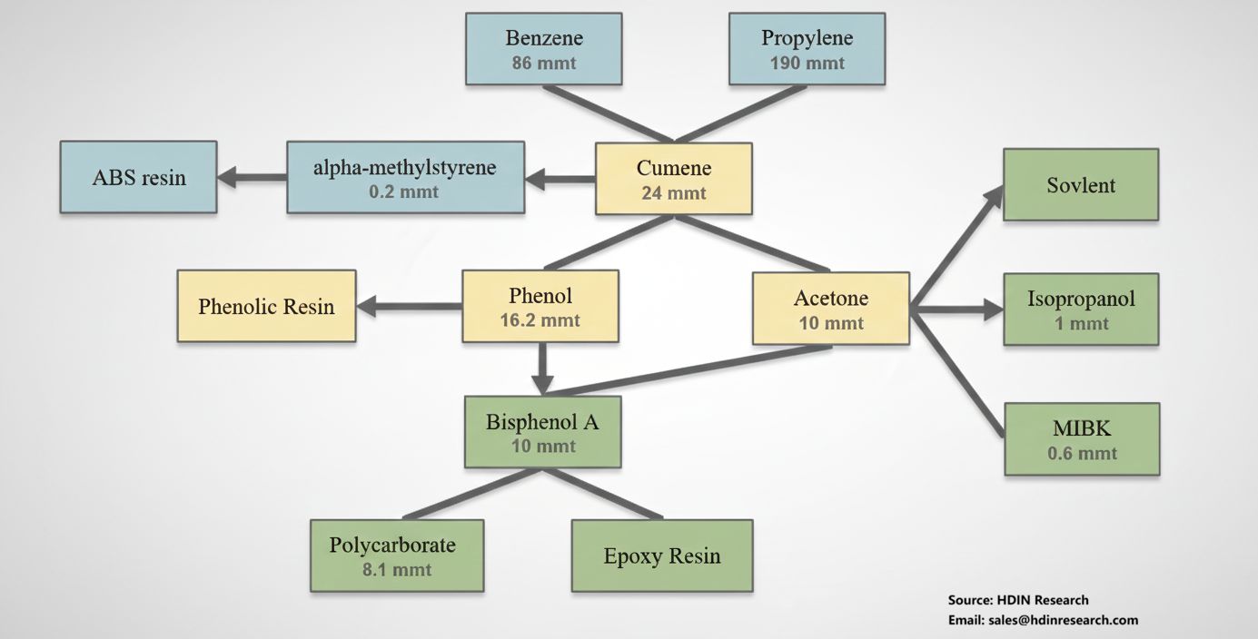 HDIN Research, a leading market research firm, has released its latest comprehensive analysis of the global Phenol-Acetone value chain. The report highlights a significant shift in global supply dynamics, driven primarily by aggressive capacity expansions in China across the entire value chain—from upstream Phenol and Acetone to downstream derivatives such as Bisphenol A (BPA), Polycarbonate (PC), and Methyl Methacrylate (MMA).