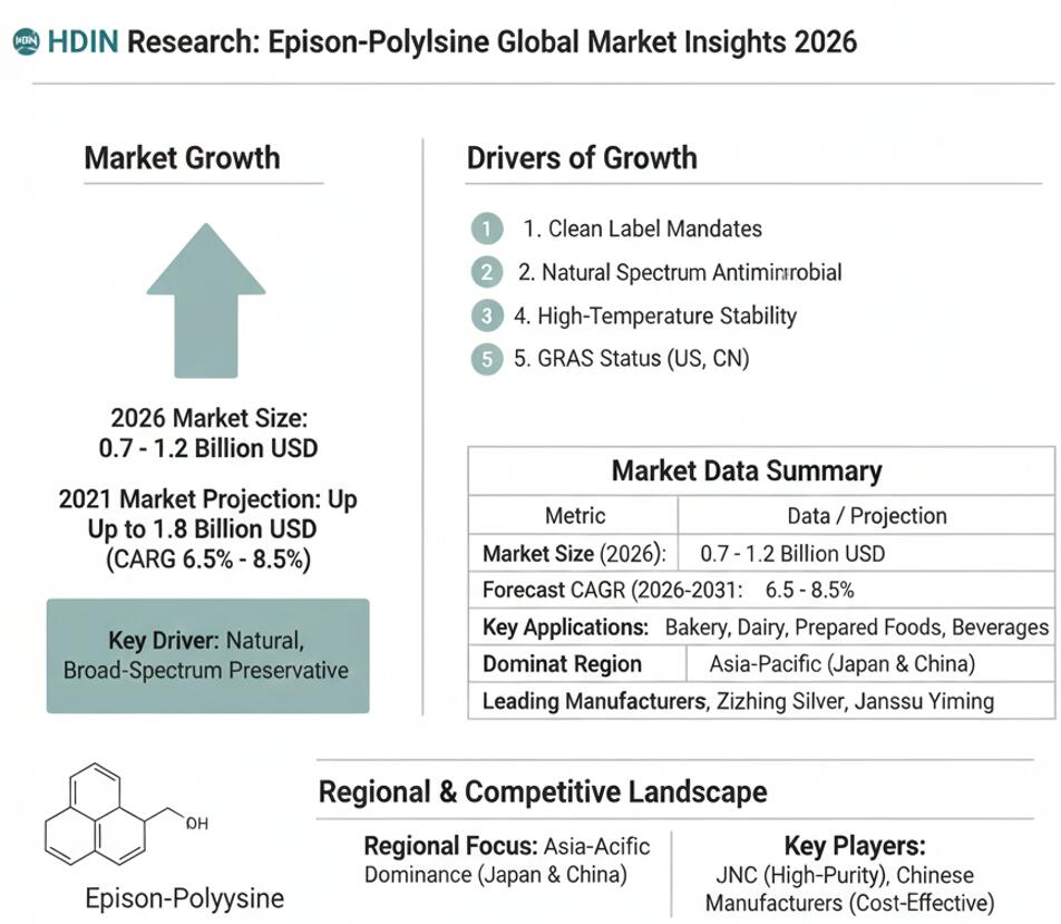 HDIN Research, a leading provider of market intelligence and strategic analysis, has announced the release of its latest comprehensive report titled Epsilon-Polylysine Global Market Insights 2026. The report details a robust growth trajectory for the natural preservative industry, driven by increasing consumer demand for clean label food products and tightening regulations on synthetic additives.