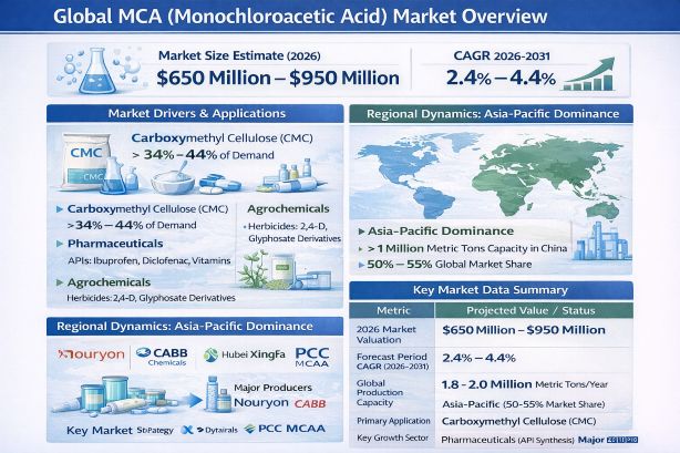 HDIN Research has released its latest comprehensive analysis on the global Monochloroacetic Acid (MCA) market. The report indicates a stable growth trajectory for this essential chemical intermediate, driven by sustained demand in carboxymethyl cellulose (CMC) production, agrochemicals, and the expanding pharmaceutical sector.