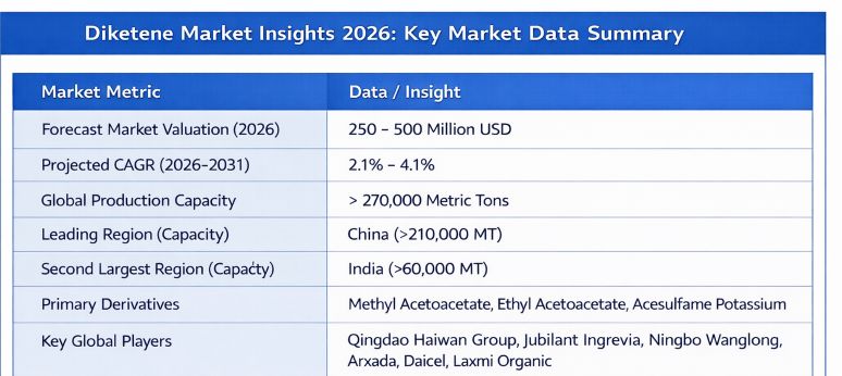 HDIN Research has released its latest industry analysis titled "Diketene Market Insights 2026," providing a comprehensive evaluation of the global diketene landscape from 2021 through the forecast period ending in 2031. The report identifies a market characterized by moderate but consistent expansion, underpinned by the essential role of diketene derivatives in pharmaceutical synthesis, crop protection, and food ingredients.