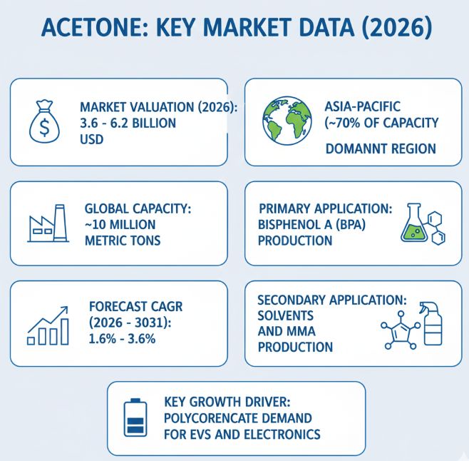 HDIN Research, a leading independent market consulting firm, has announced the release of its latest comprehensive study, Acetone Market Insights 2026. The report offers a detailed evaluation of the global acetone industry, valuing the current market between 3.6 and 6.2 billion USD. The study projects a compound annual growth rate (CAGR) of 1.6% to 3.6% through 2031, driven by industrialization in emerging economies and steady demand from the engineering plastics sector.