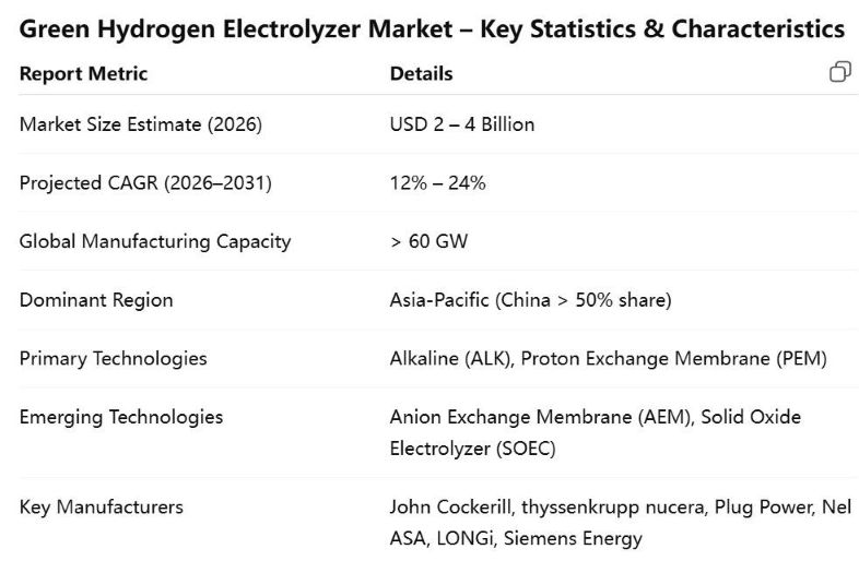 Green Hydrogen Electrolyzer Market Insights 2026: Industry Trends and Forecast