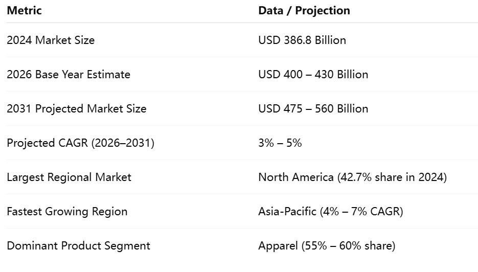 The study highlights that the industry has demonstrated significant resilience. Following the disruptions of previous years, the market reached 386.8 billion USD in 2024, achieving a year-over-year growth of 3.1 percent. HDIN Research projects a Compound Annual Growth Rate (CAGR) of 3 to 5 percent through 2031, potentially driving the market valuation to between 475 and 560 billion USD. This growth is underpinned by geographic diversity, channel innovation, and the evolving consumer preference for "athleisure"—the convergence of athletic performance wear and everyday fashion.