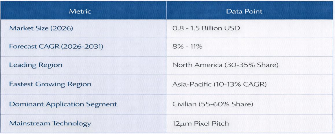 According to the study, the global MEMS microbolometer market has reached an estimated valuation of 0.8 to 1.5 billion USD in 2026. The market is projected to expand at a compound annual growth rate (CAGR) of 8% to 11% through 2031. This growth trajectory is primarily fueled by the expanding adoption of thermal imaging technologies in civilian sectors, particularly in automotive Advanced Driver Assistance Systems (ADAS), industrial process monitoring, and consumer electronics.