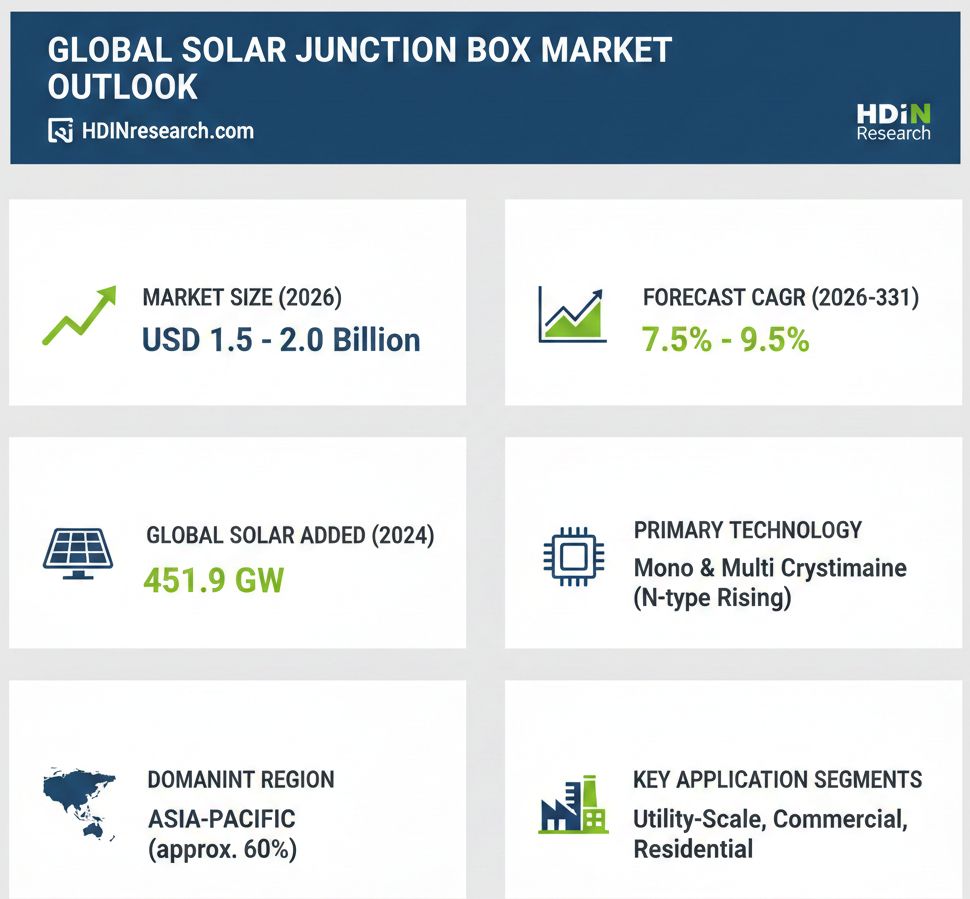 HDIN Research has released a comprehensive new market study titled "Solar Junction Box Global Market Insights 2026," offering an in-depth analysis of the industry landscape, technological trends, and growth forecasts through 2031. The report identifies the solar junction box sector as a critical component of the global energy transition, with market valuation expected to range between USD 1.5 billion and USD 2.0 billion by 2026.