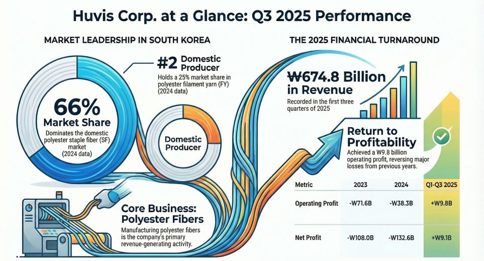 HDIN Research, an independent market consulting firm, has released a comprehensive analysis of Huvis's financial performance based on its Q3 2025 report. The analysis reveals a significant operational turnaround for the South Korean fiber giant, which has successfully transitioned from deep losses in the previous year to profitability in 2025. This recovery is attributed to a strategic shift from general-purpose fibers to high-value-added materials and a successful restructuring of production capabilities.