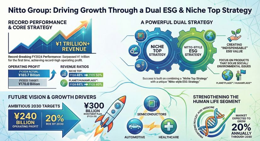 Nitto Denko Achieves Record Profitability Driven by Global Niche Top Strategy and ESG Integration